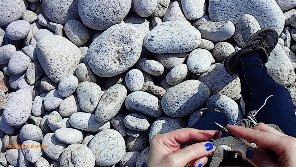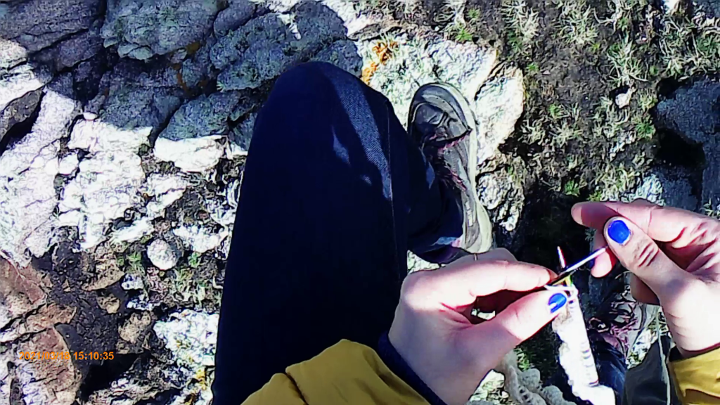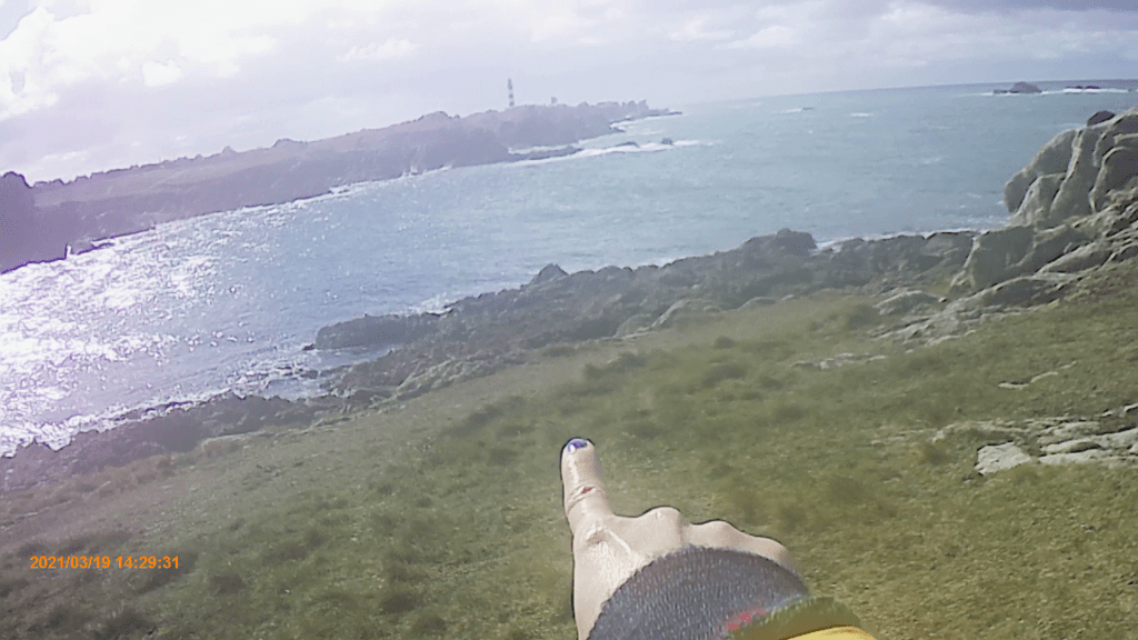 Performance, vidéo (GoPro), tricot. Arpentage de la face nord-ouest de l’Île d’Ouessant / 2021- en cours
