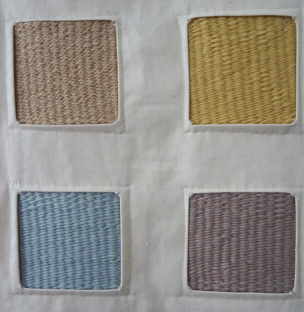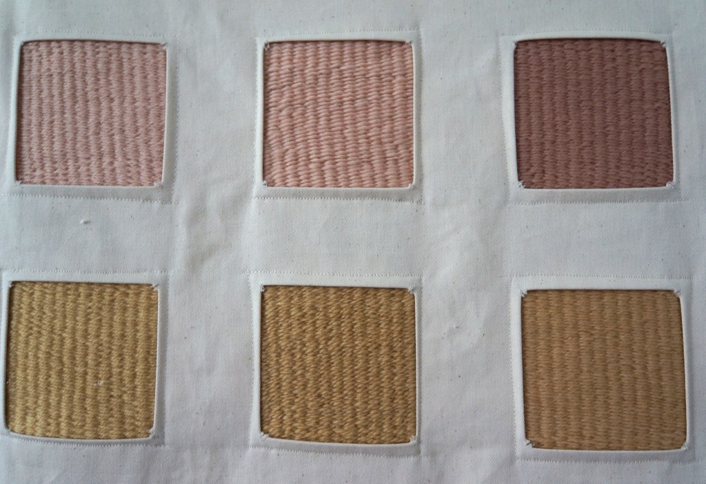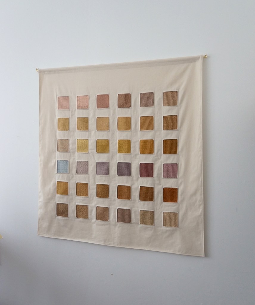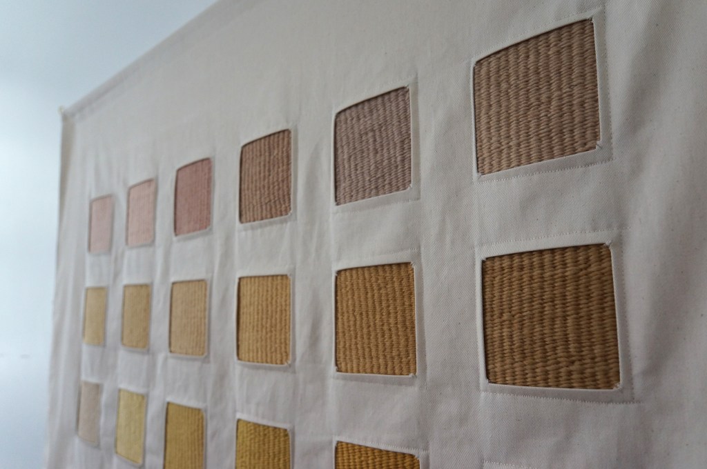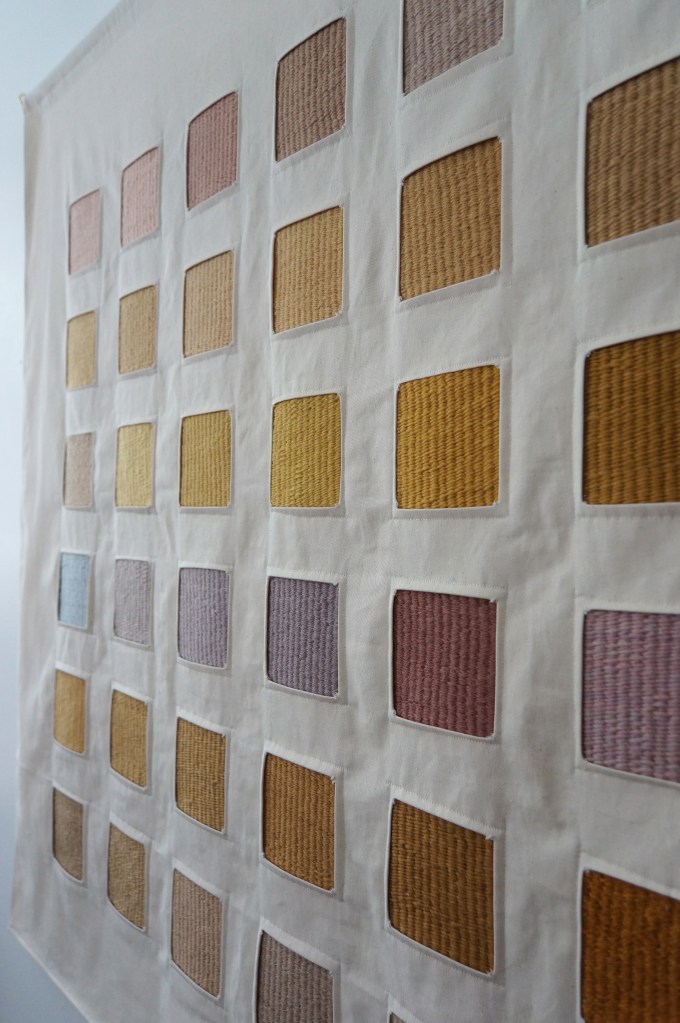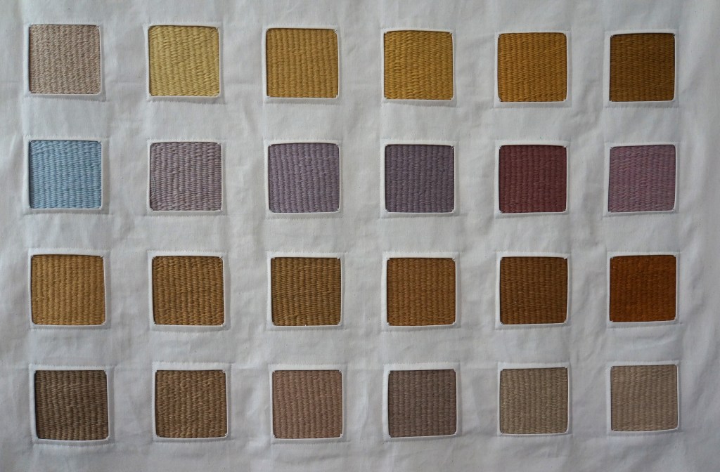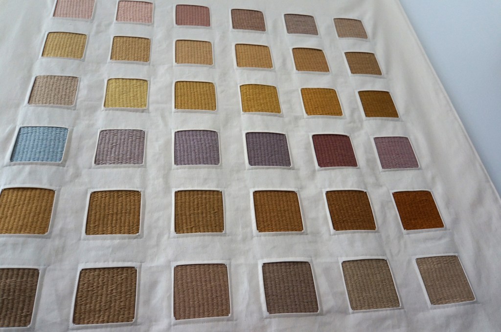 36 échantillons tissés, laine de mérinos teinte avec des lichens, sergé de coton / 117 x 114 cm / 2022